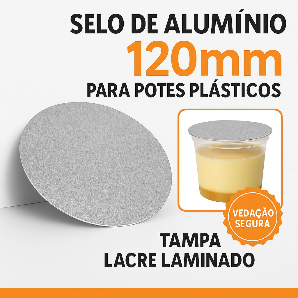 Selinho Tampa Selo de Alumínio 120mm para Potes Plásticos Vedação Lacre de Segurança Laminado