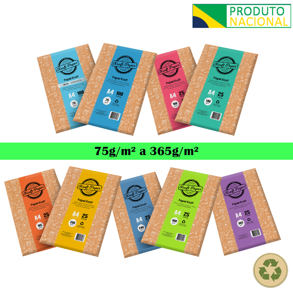 Papel Kraft Liso Fosco A4 75g/m² a 365g/m² Ideal para impressões e artesanato