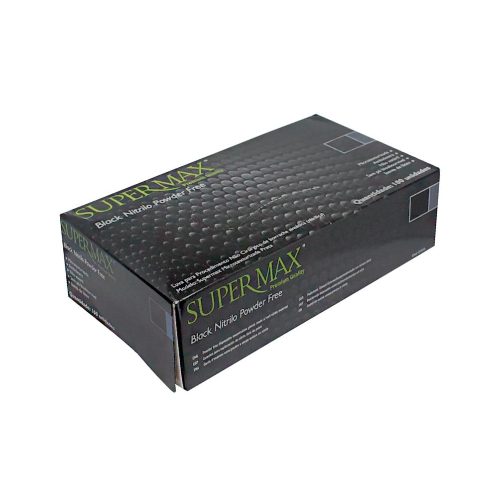 Luva Nitrílica Preta Black s/ pó Supermax cx c/ 100 und