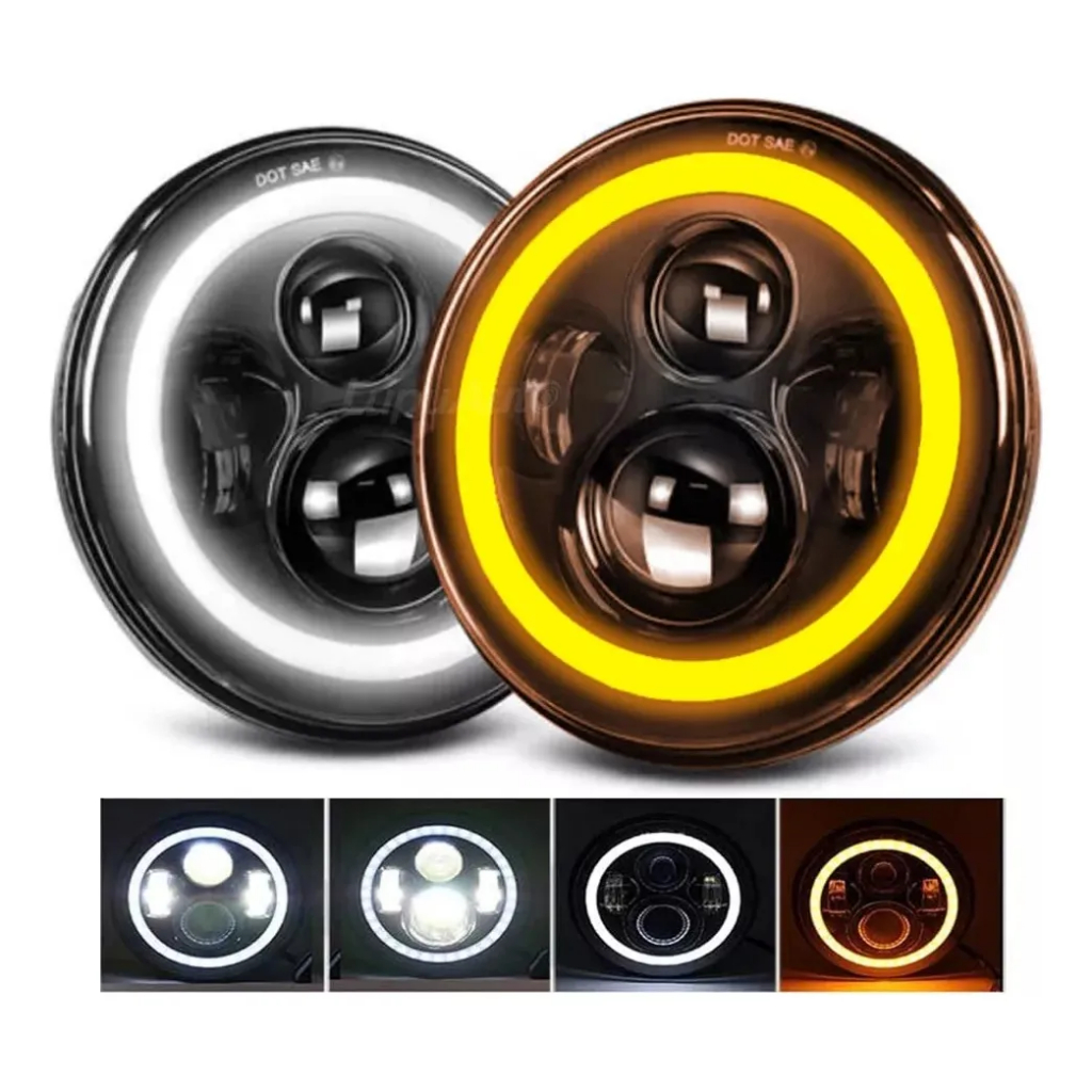 Par Farol 7 Polegadas Angel Eyes Defender Led Jeep Troller Fusca Kombi Drl + Seta universal redondo