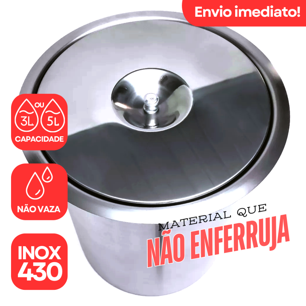 Lixeira de Embutir Inox Pia Gourmet 3 ou 5 Litros não Enferruja resistente linha luxo