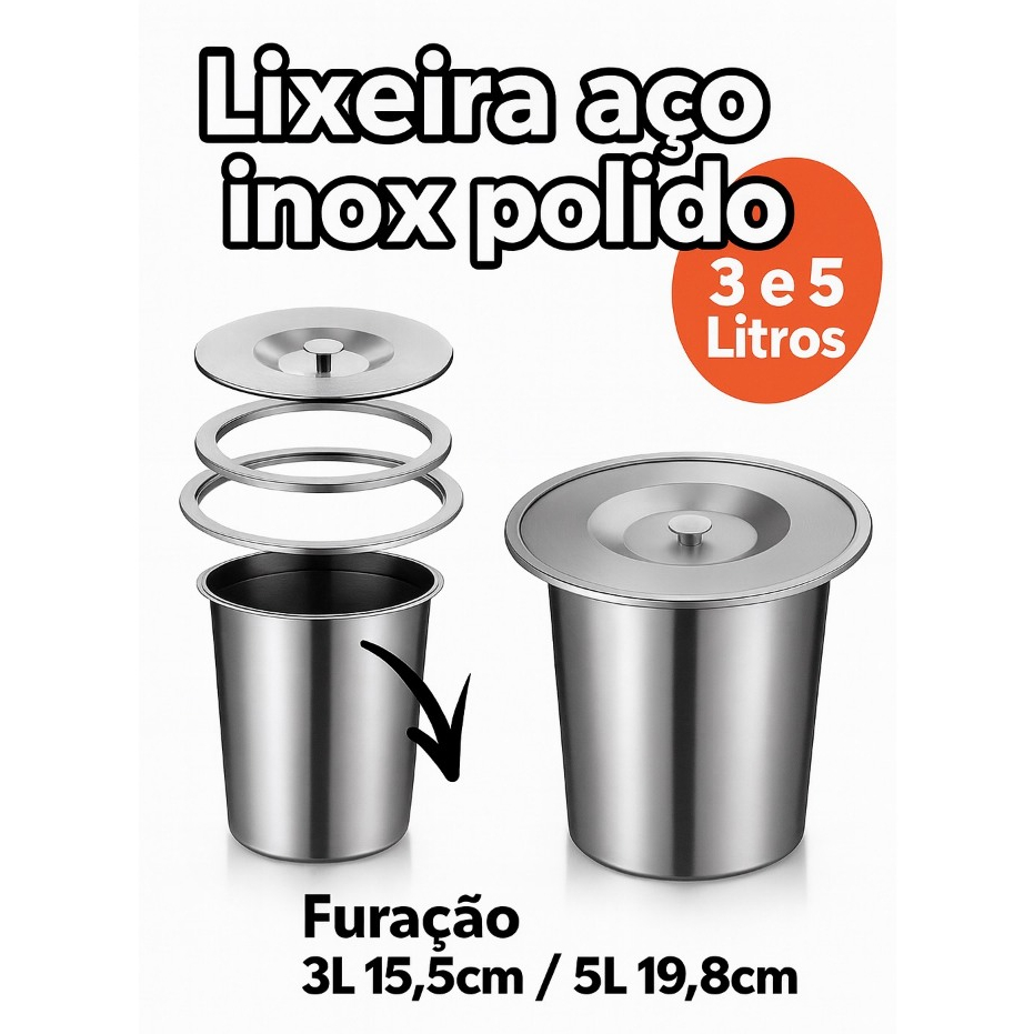 Lixeira Inox para Embutir 3 ou 5 Litros para Pia Granito Gourmet Não enferruja
