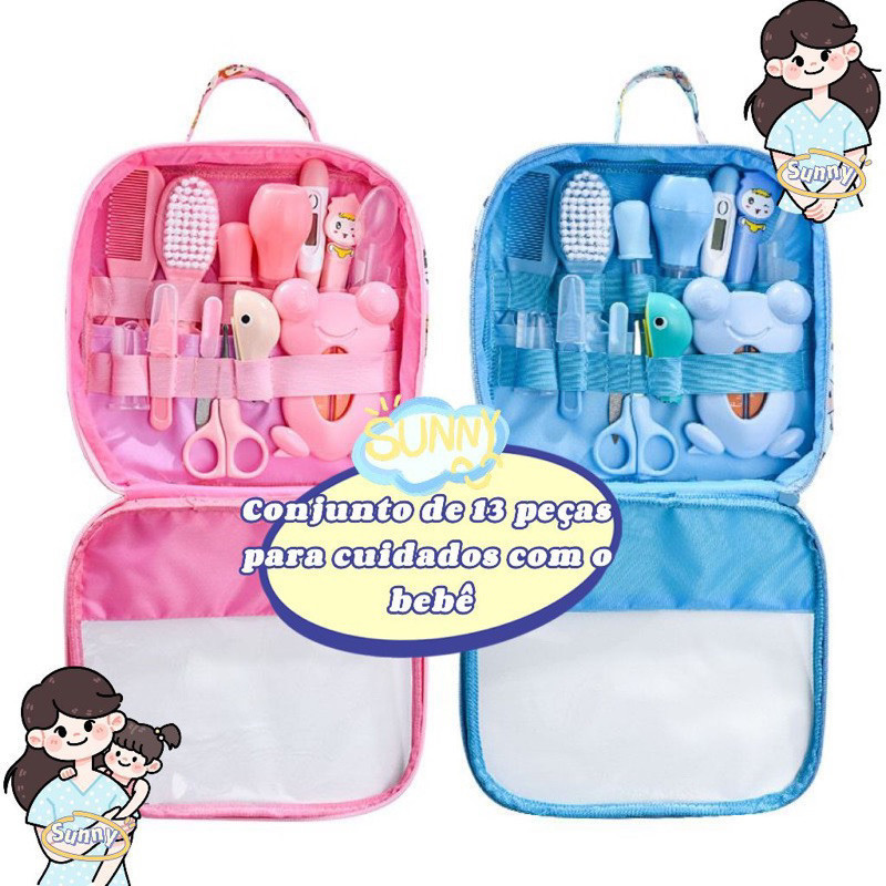 Bolsa Com Kit Para Cuidados De Higiene E Saúde Do Seu Bebê Com 13 Peças Contém Termômetro Escova Cortador E Outros Produtos