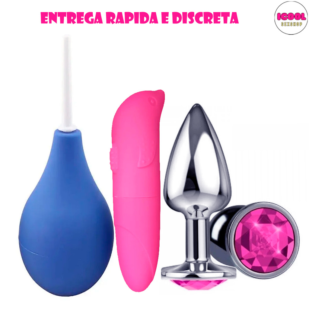 Kit Plug Anal + Ducha Higiênica Intima + Vibrador Feminino Sexual Ponto G
