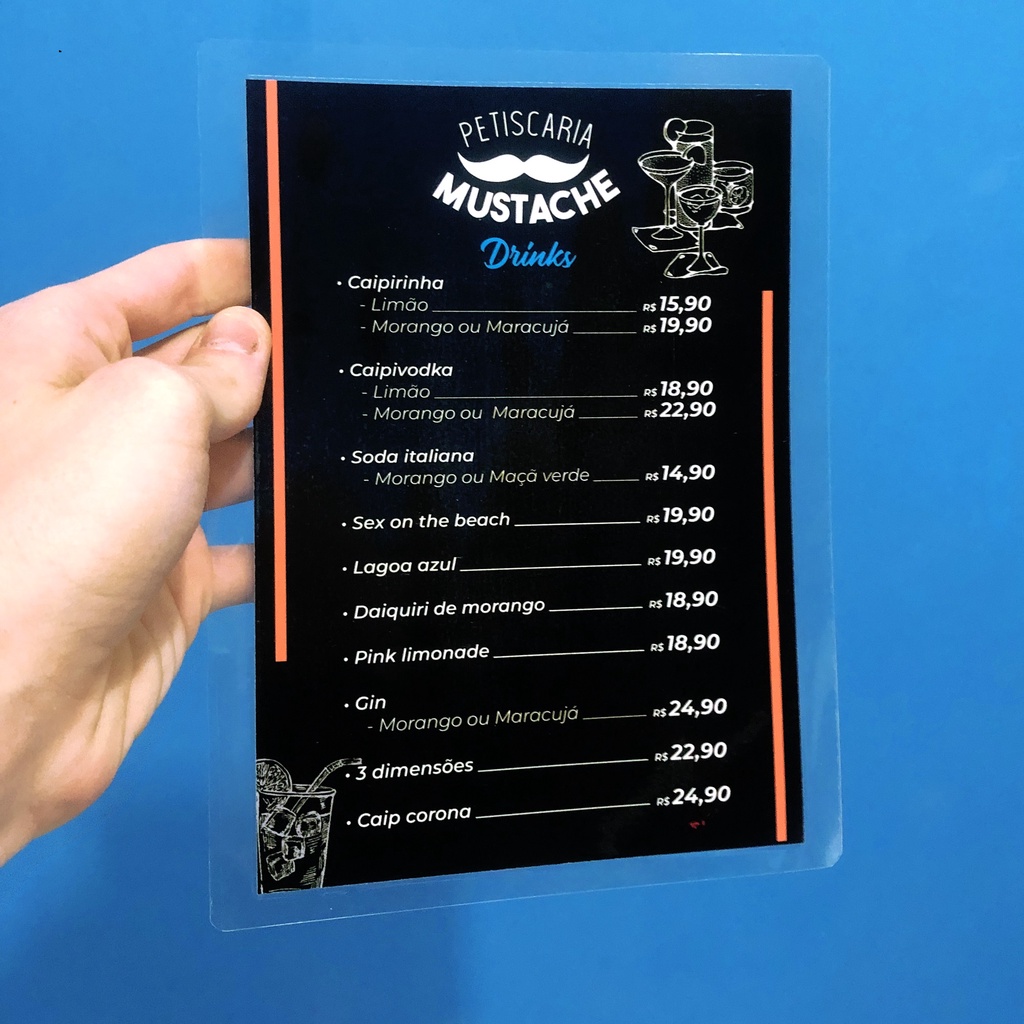 Cardápio Menu Plastificado | tamanho A4 | impressão em alta qualidade