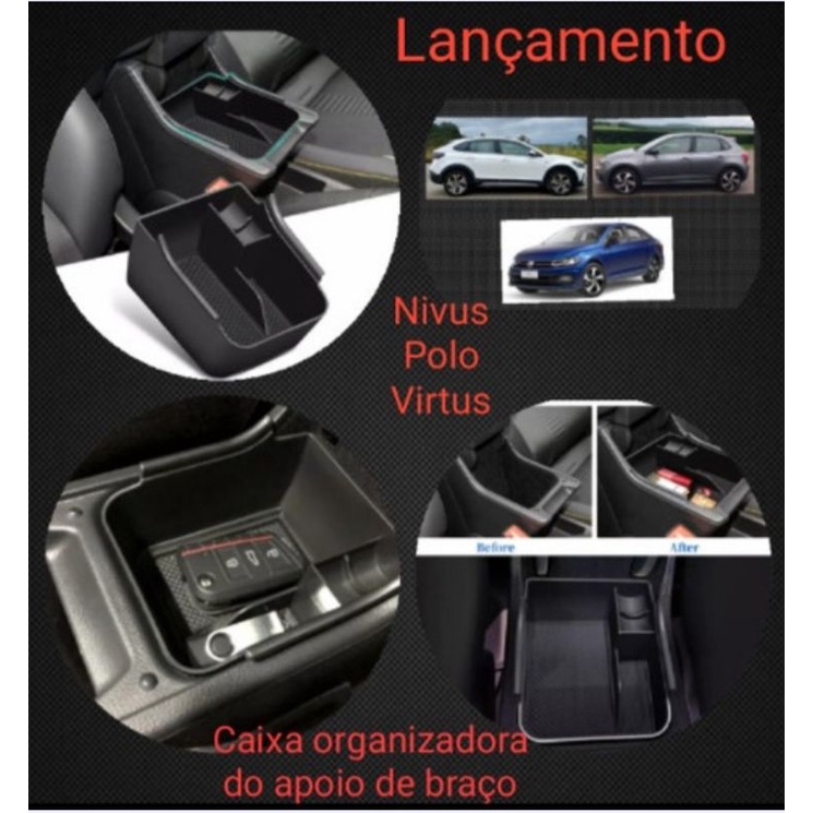 Caixa organizandora para o descanso de braço do VW Nivus, Polo e Virtus