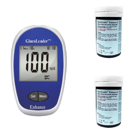 Kit Aparelho Medir Glicose Glucoleader Enhance + 100 Tiras