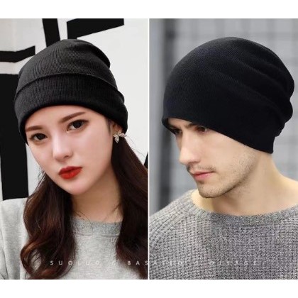 Touca Gorro de Lã Unissex Preta Lisa Adulto Inverno Frio
