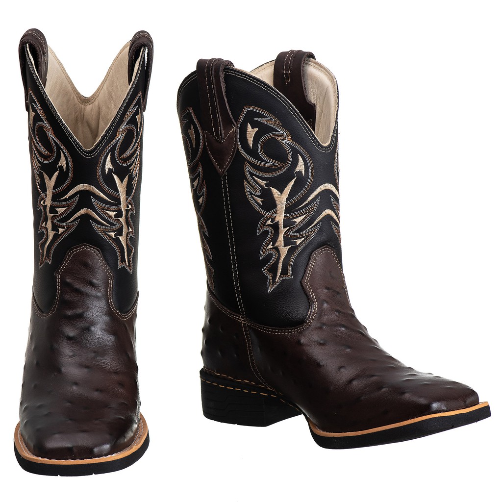 Bota Texana Couro Avestruz bico quadrado Rodeio marrom café CAMPERO