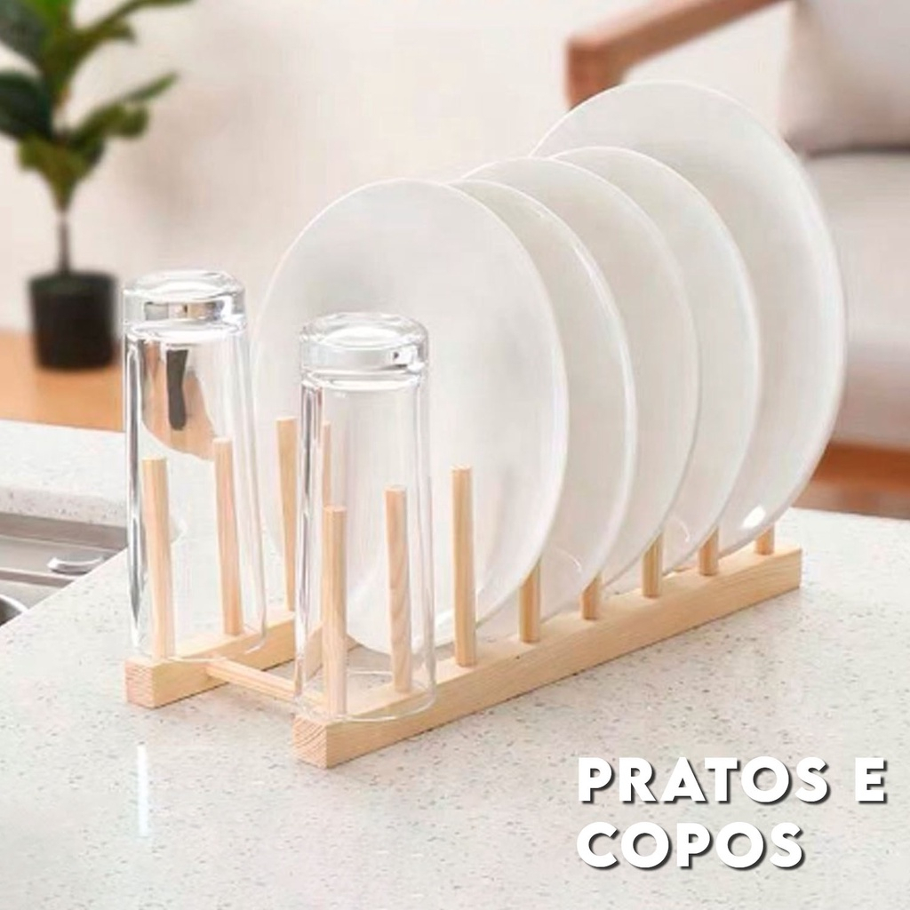 Porta Pratos ou copos De Bambu Com 6 Divisórias - Escorredor De Louça