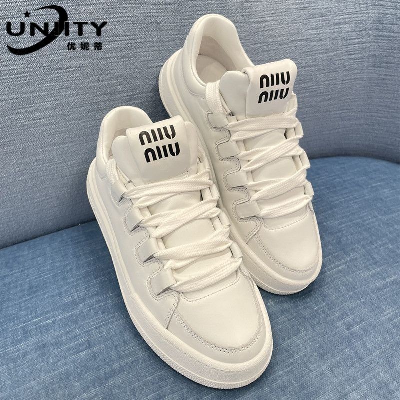 Calçados Femininos Miu Sapatos Brancos De Sola Grossa Aumentar O Novo Estilo Clássico De Couro Casual Para Mulheres