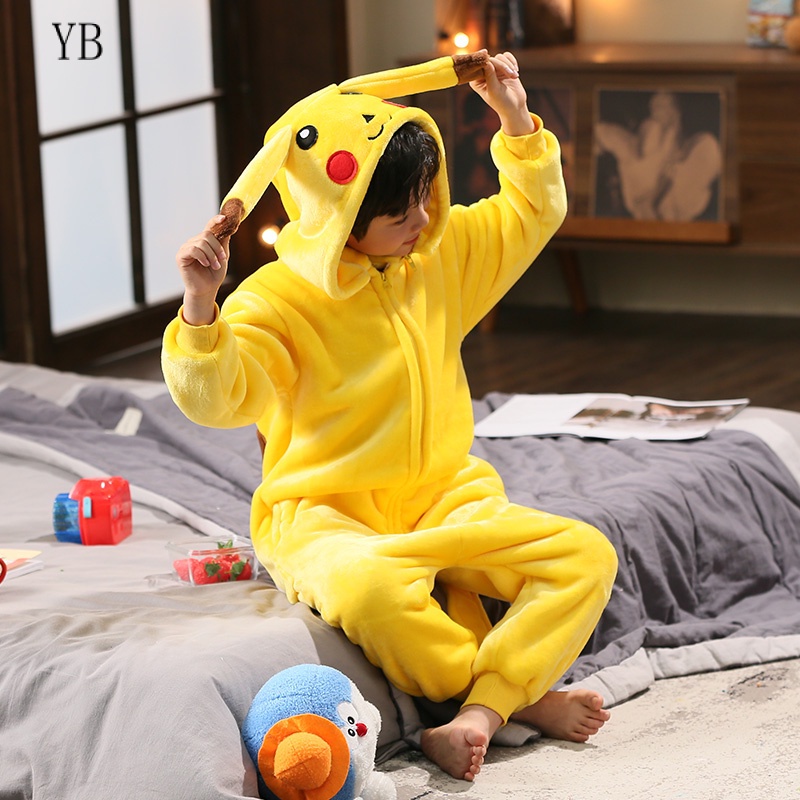 Pijama De Pelúcia Flexível Pikachu One Piece Anime Pokemon Manga Comprida Para Inverno/Crianças Casual Wear 527
