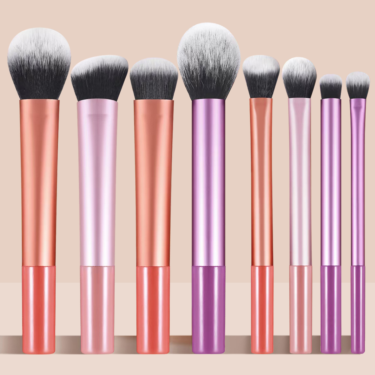 Conjunto de 8 Peças Escova Multicolor para Maquiagem Tubo Longo Conjunto de Escovas Inclui Escova Blush Escova em Pó Solta Escova de Pó para Contorno de Superfície Escova para Sombra Escova para Sombra Escova para Contorno de Escova Brilhante Fábrica de E