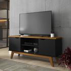 Rack Bancada para Sala de Estar com 2 Portas e Pés em Madeira Maciça com Capacidade para TV's de até 55 Polegadas Flow Ej Móveis - Preto