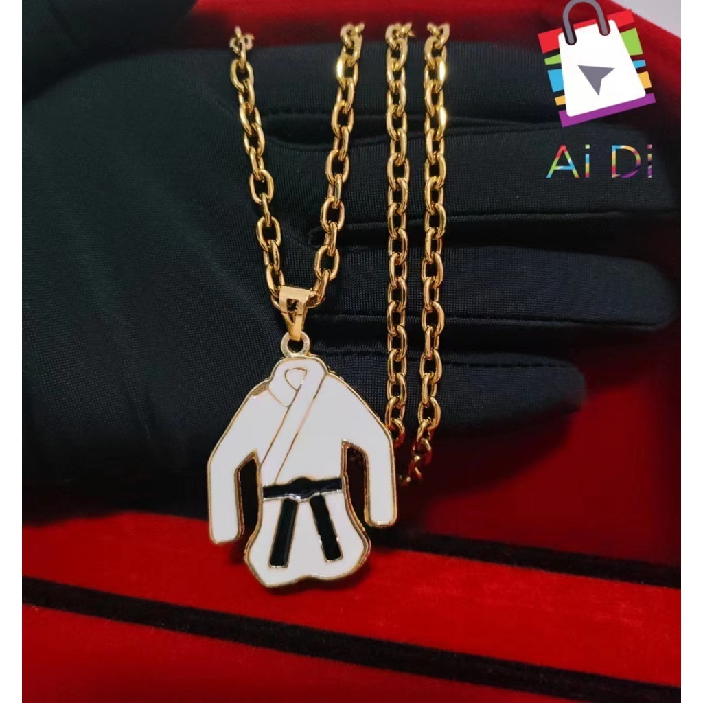 Conjunto de Joias Masculinas: Kit Corrente Cordão Baiano 4mm Banhada a Ouro 18K + Colares com Pingente Quimono Faixa Preta Luta 316L