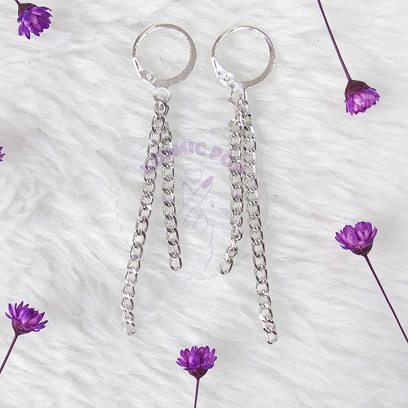 Brinco de Argolinha com Correntes Alternativo Kpop