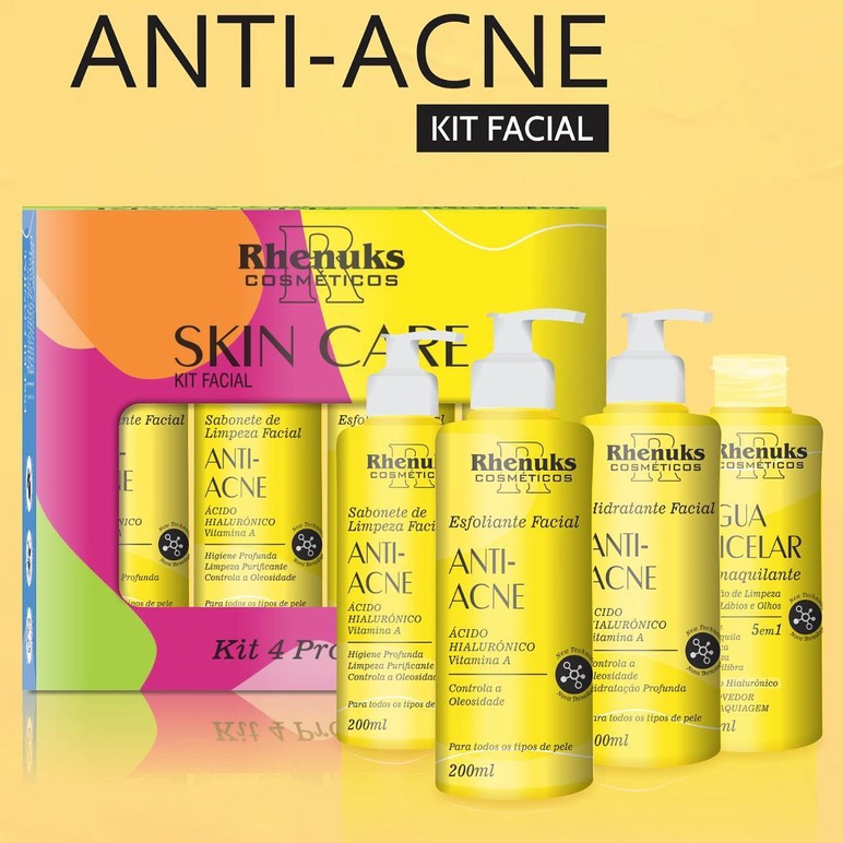 Kit Skin Care Facial Anti-Acne com 4 itens Rhenuks Cosméticos