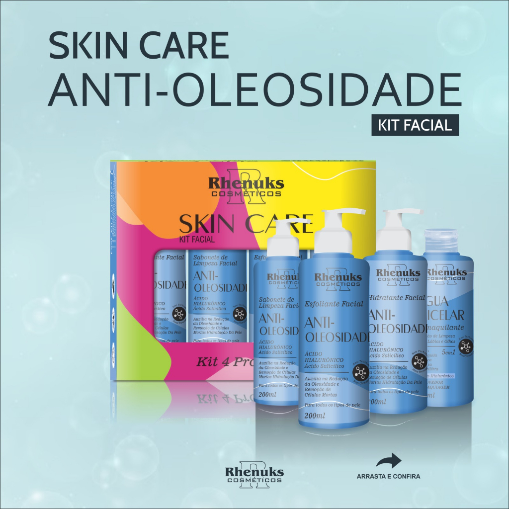 Kit Tratamento Facial Skin Care Anti-oleosidade Kit C/4 Unidades Rhenuks
