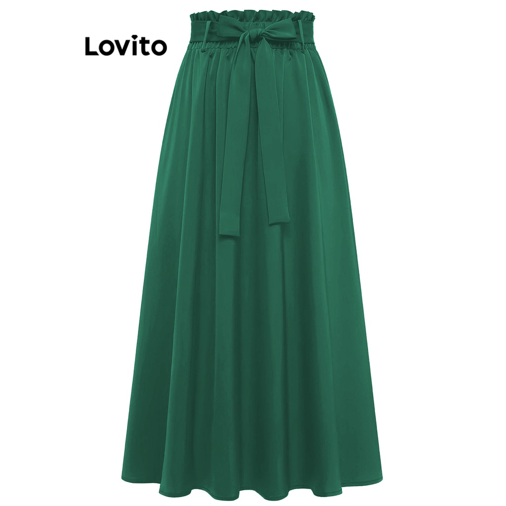 Lovito Saia Frontal Elegante Com Cinto Liso E Gravata Para Mulheres LNE31202 (Verde Preto)