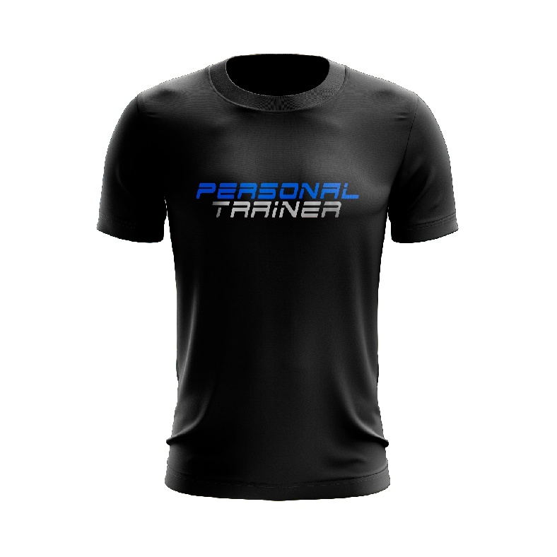 Camiseta Personal Trainer DryfIt Preta Personalize Seu Nome Indicado para Treino Luta Corrida Academia