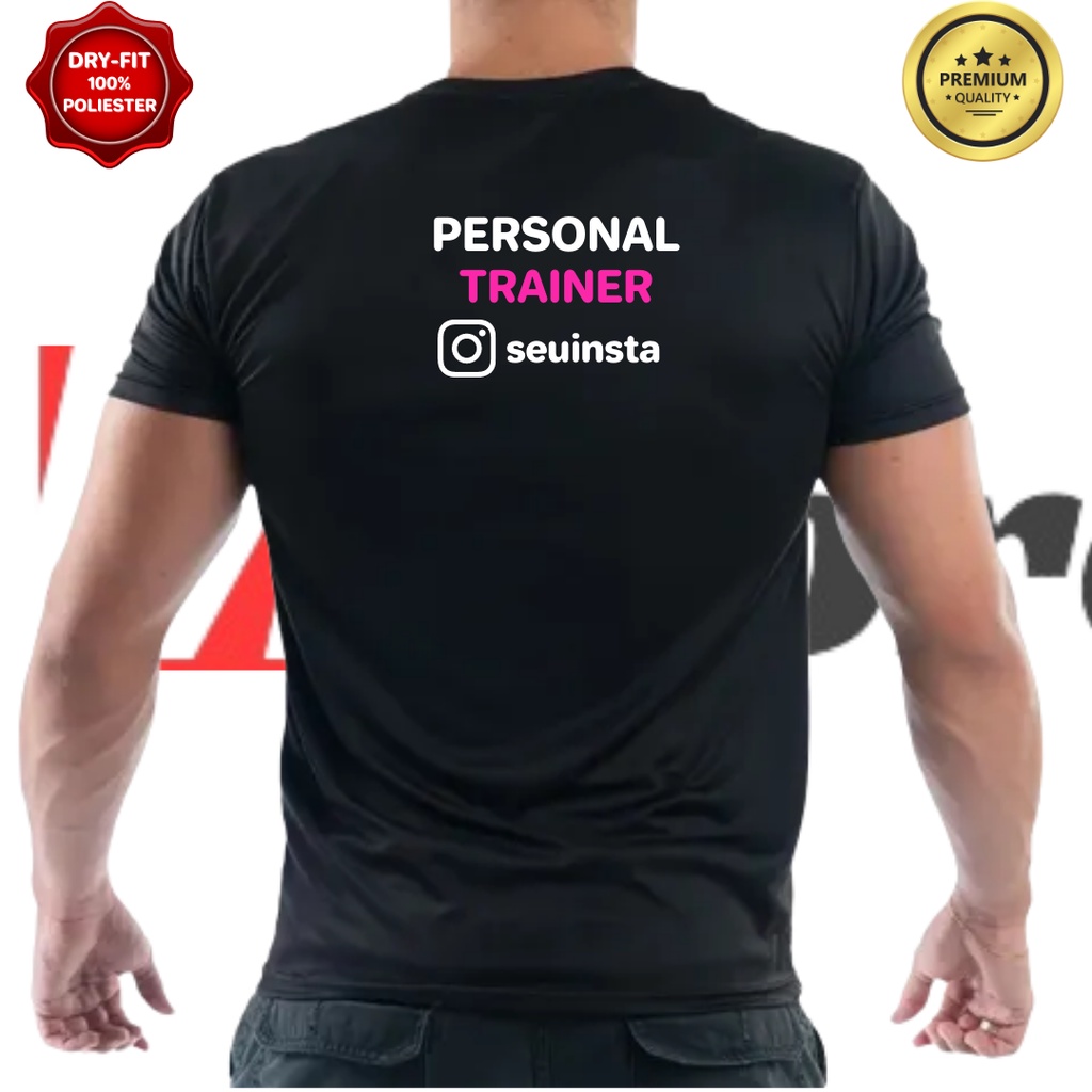 Camiseta Personal Trainer Dry Fit Personalizada Insta ou Nome 100% Poliéster - Lançamento