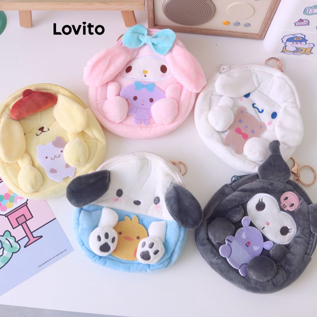 Lovito Bolsa De Ombro Pequena De Pelúcia Com Estampa De Zíper Bonito Desenho Animado Sanrio Feminino Coração Para Mulheres LFA10625