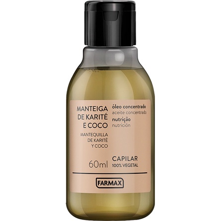 Óleo Capilar Manteiga de Karité e Coco 60ML Farmax (100% Vegetal) - Produto Original