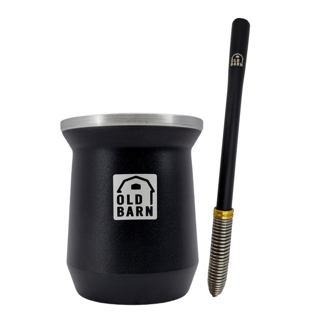 Kit Tereré Old Barn 1 Cuia De Alumínio Parede Dupla 300ml 1 Bomba De inox Mola Removível Cor Black