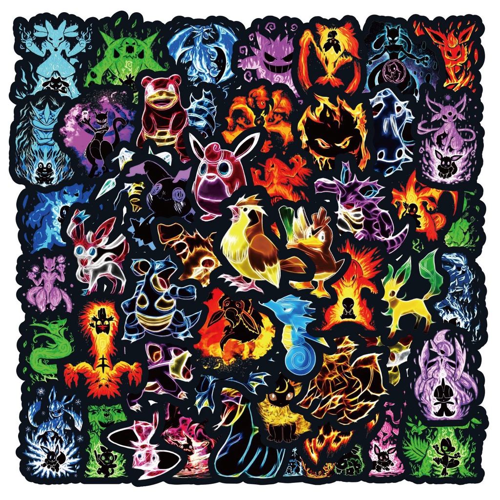 60 Unid . Adesivos De PVC À Prova D'água Pokemon Neon Lights (2)
