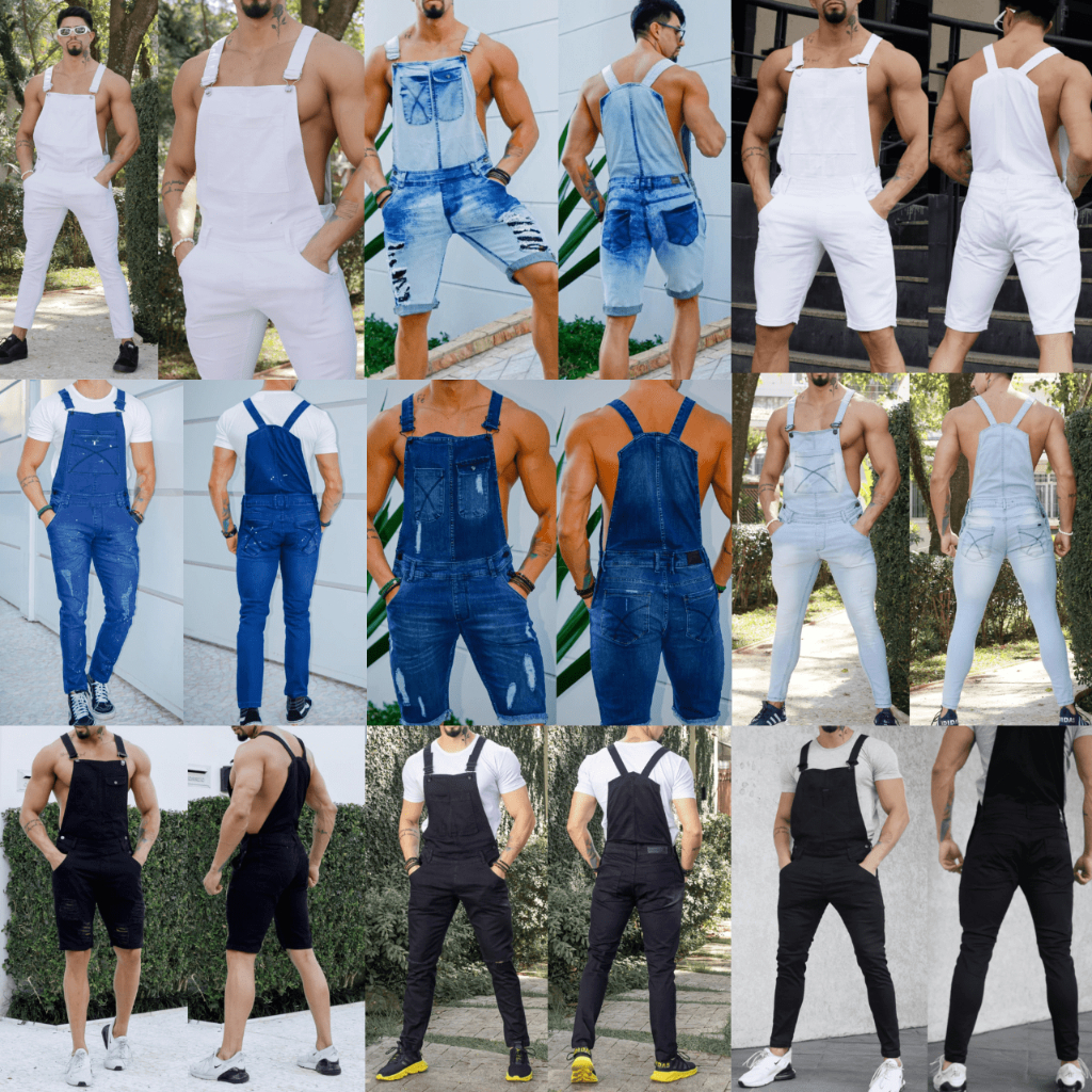 Macacão Jardineira Jeans Masculino Manchado Moda Estilo Cor Liso Casual Plus Size