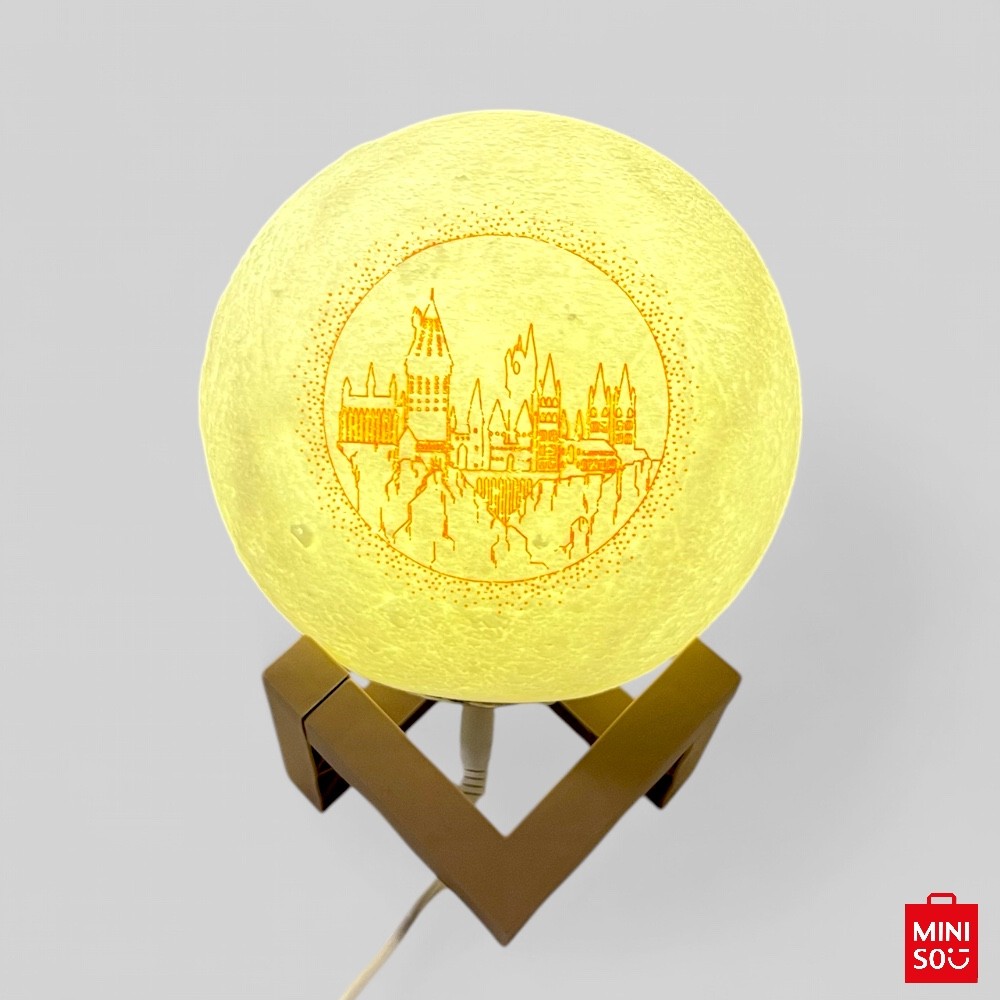 LUMINÁRIA ABAJUR DE MESA COM LUZ LED EM FORMATO DE LUA COM FIO E BASE HARRY POTTER