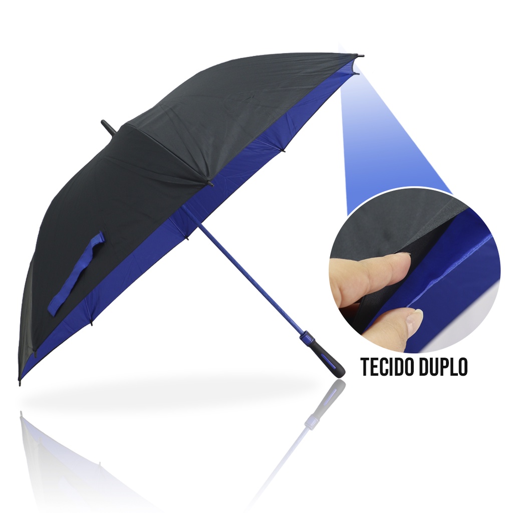 Guarda Chuva Sombrinha Automático e Manual Preto Grande Tecido Duplo Reforçado Contra Vento