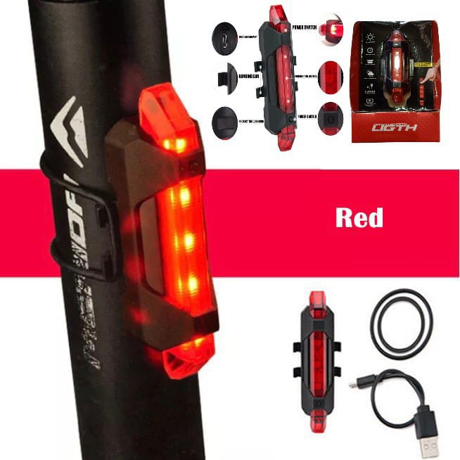 Lanterna Led Recarregável Sinalizador Bicicleta Traseira Ciclista USB 4 Modos Uso