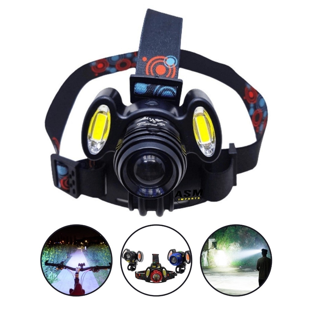 Lanterna De Cabeça 3 led Recarregavel Farol Ajustavel Super Forte Potente 1.500 Lúmens Bicicleta Bike Camping Trilho