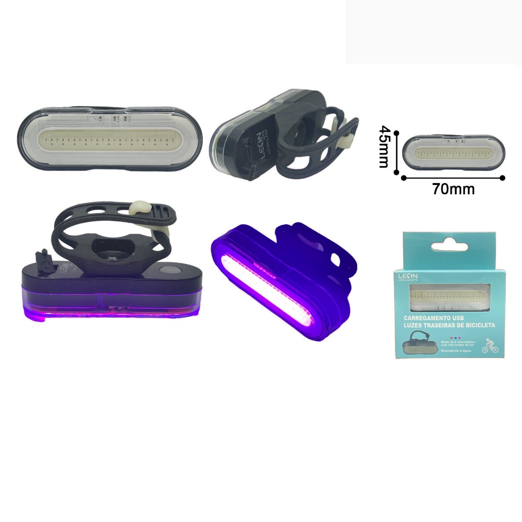 Lanterna de Bike Led Recarregável Forte Sinalizador Bicicleta Traseira Forte Ciclista Ciclismo USB 4 Modos Uso LA24