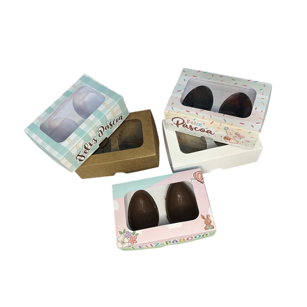 20 Caixas para 2 ovos de Colher 50 g Lembrancinha Feliz Páscoa Com Visor de Acetato