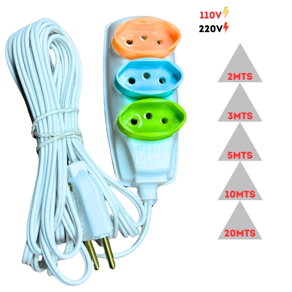 Extensão elétrica Branca( 30; 25 ; 20 ; 15 ; 10; 5 ; 2 ; 1 ; metros estensao de energia 3 tomadas Bivolt Padrão Novo/antigo 10/20A