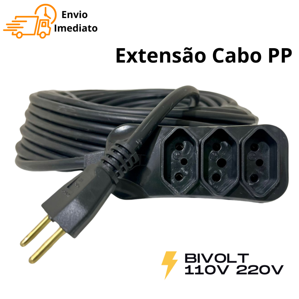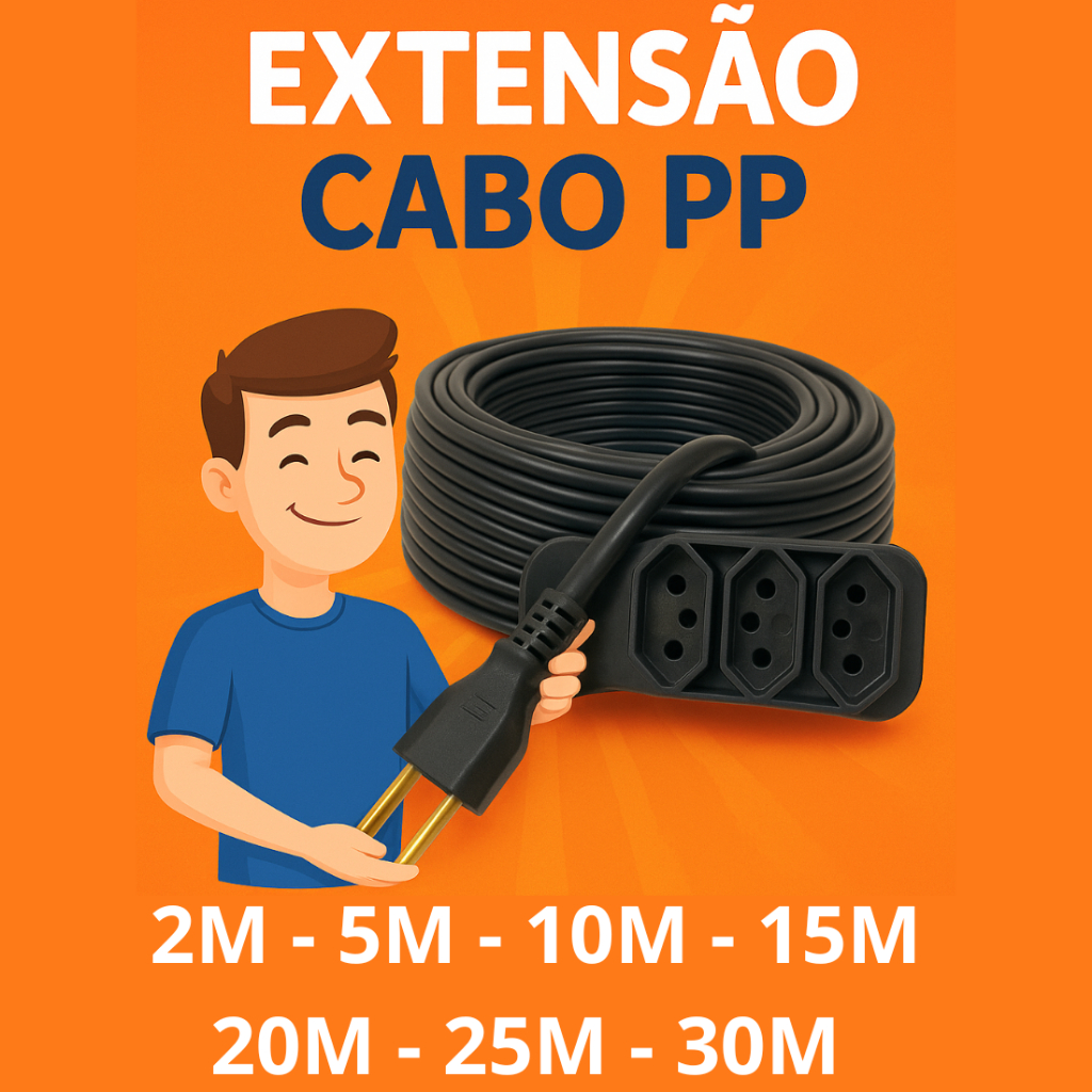 Extensão Elétrica Cabo PP 2X2.50mm de 1,5/3/5/10/15/20/30/50/100 Metros