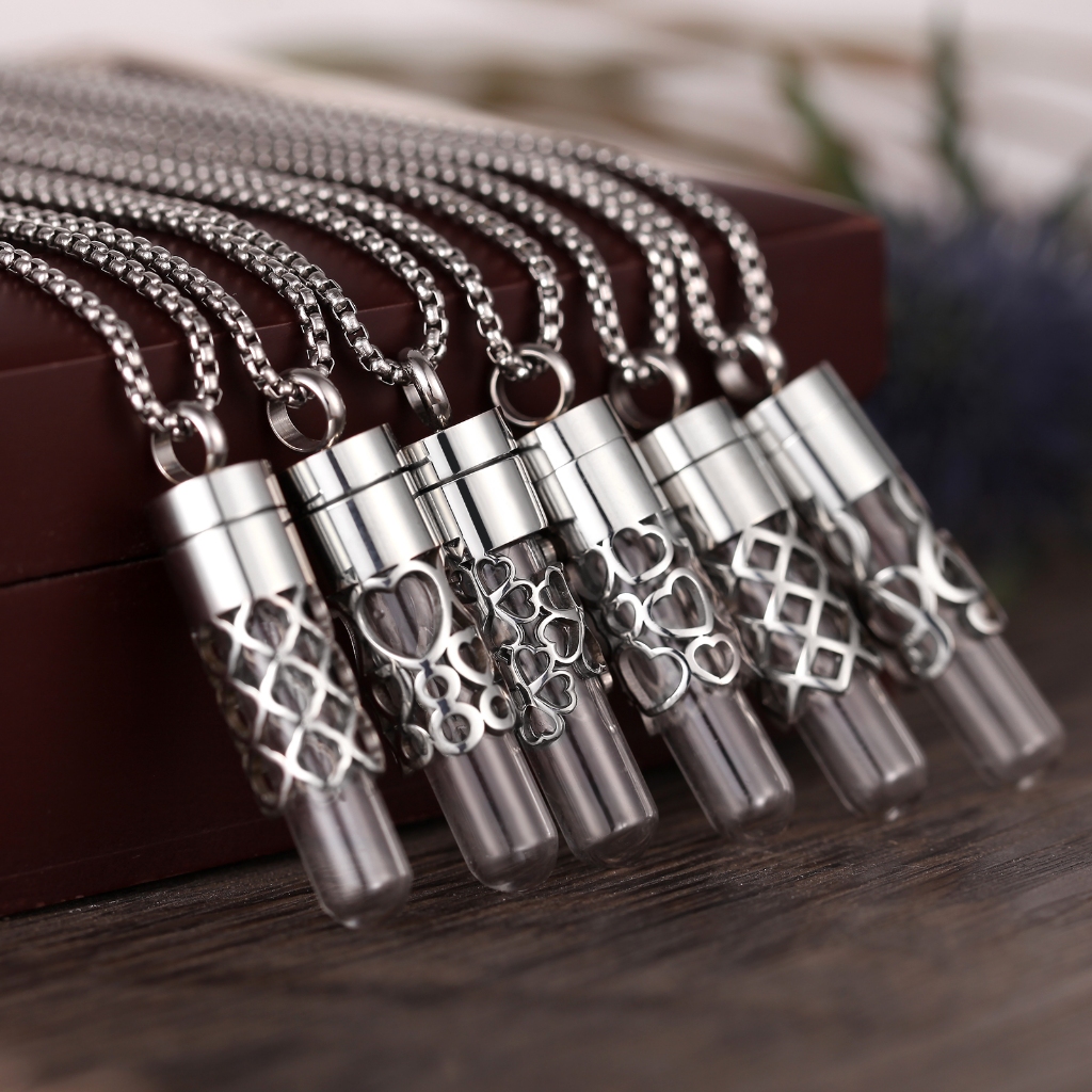 Novo Pingente Aroma Tubo De Vidro Difusor De Aço Inoxidável 316L Colar Óleo Essencial Perfume Jóias