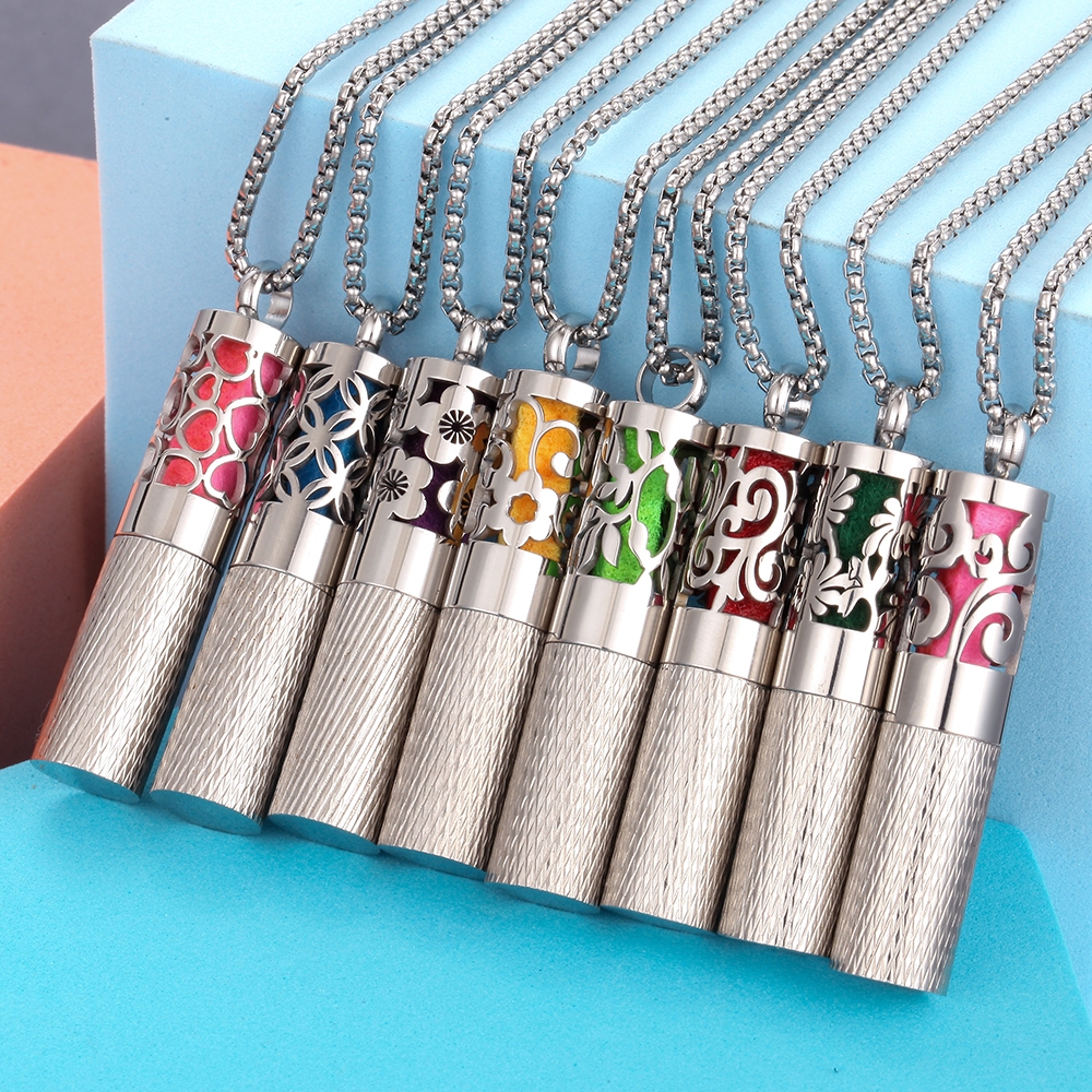 Novo Colar Difusor De Aromaterapia 316L Medalhão De Aço Inoxidável Perfume Óleo Essencial Pingente Aroma Garrafa De Arma