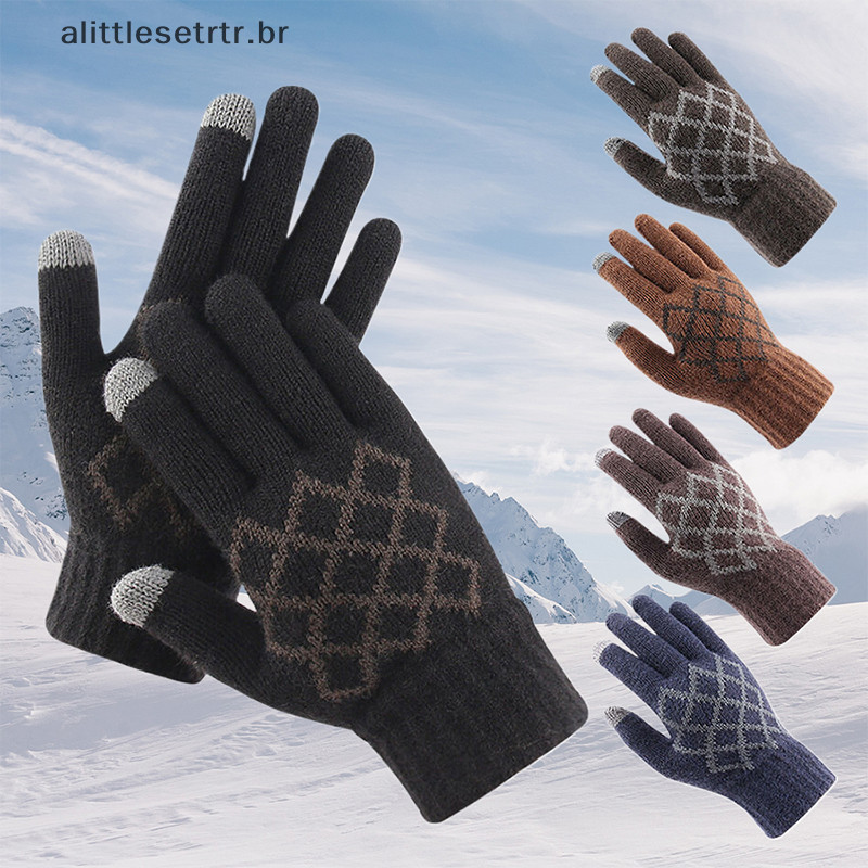 Tlesetrtr 1luvas De Tela De Toque De Inverno Mulheres Homens Mittens De Malha Quente Dedo Cheio Luva Térmica