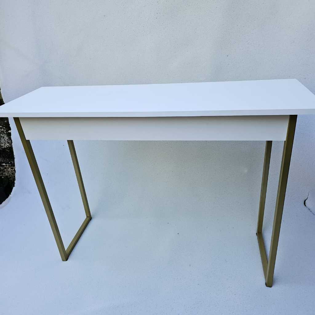 APARADOR INDUSTRIAL DOURADO TAMPO BRANCO E PES DE FERRO