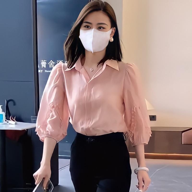 3 4 4 Blusa formal De Manga Comprida Com Gola POLO Branca ormal Para Mulheres Mais Tamanho , Camisa De Verão De Lanterna Solta