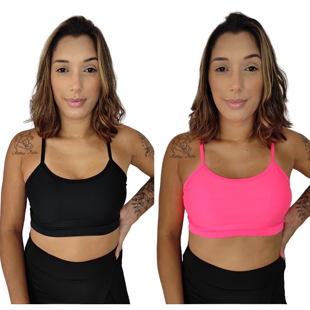 Kit 2 Top Fitness Feminino De Alcinha com Bojo removível Academia