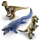 3 Dinossauros em Vinil Mosassauro Rex Velociraptor Brinquedo