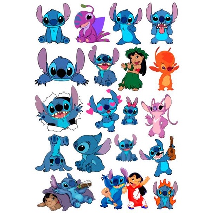 25 Adesivos Lilo & Stitch (sticker) para Cadernos, Armário, Objetos, Materiais Escolares - Cartela Altíssima Resolução