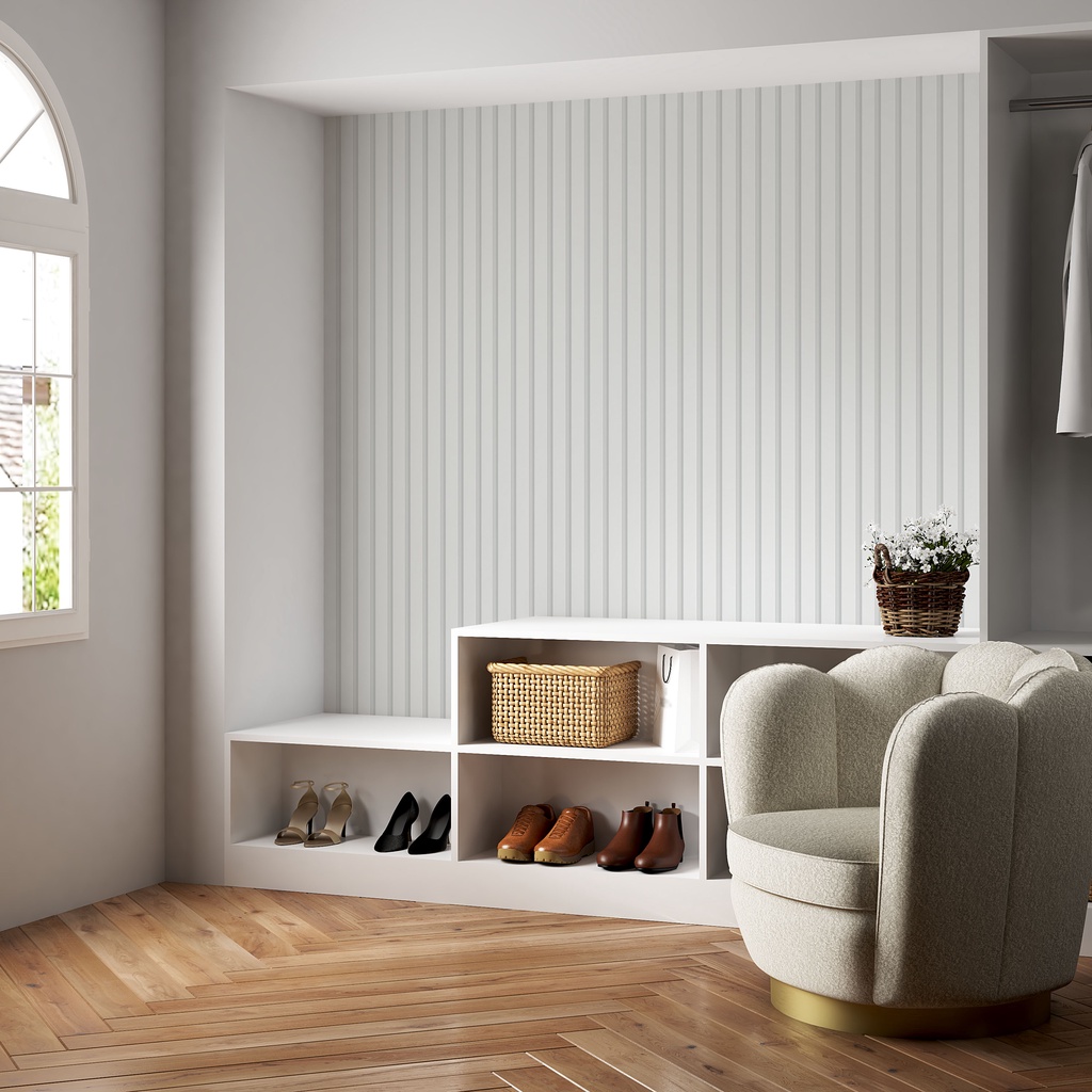 Papel de Parede Madeira Ripada Em Tons de Branco 1m