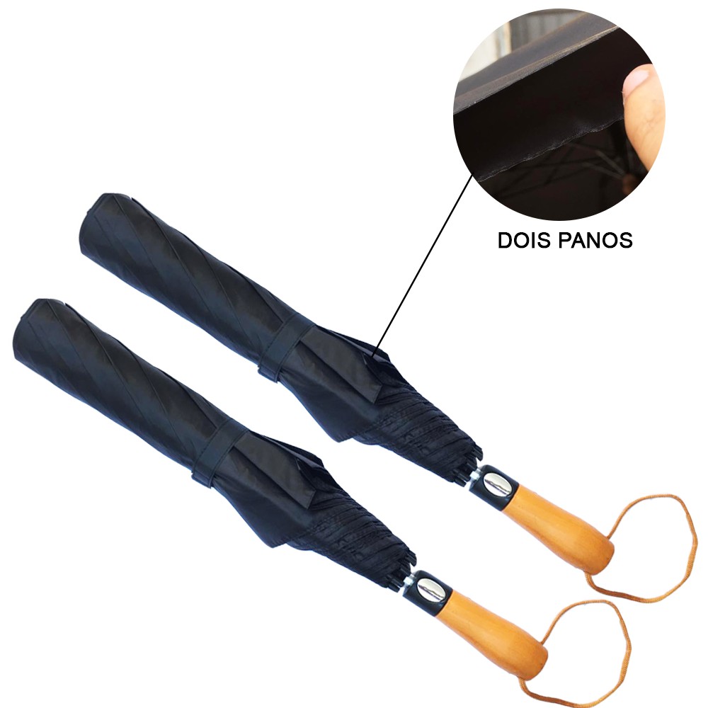 Guarda Chuva Sombrinha Automático e Manual Preto Grande Tecido Duplo Reforçado Contra Vento