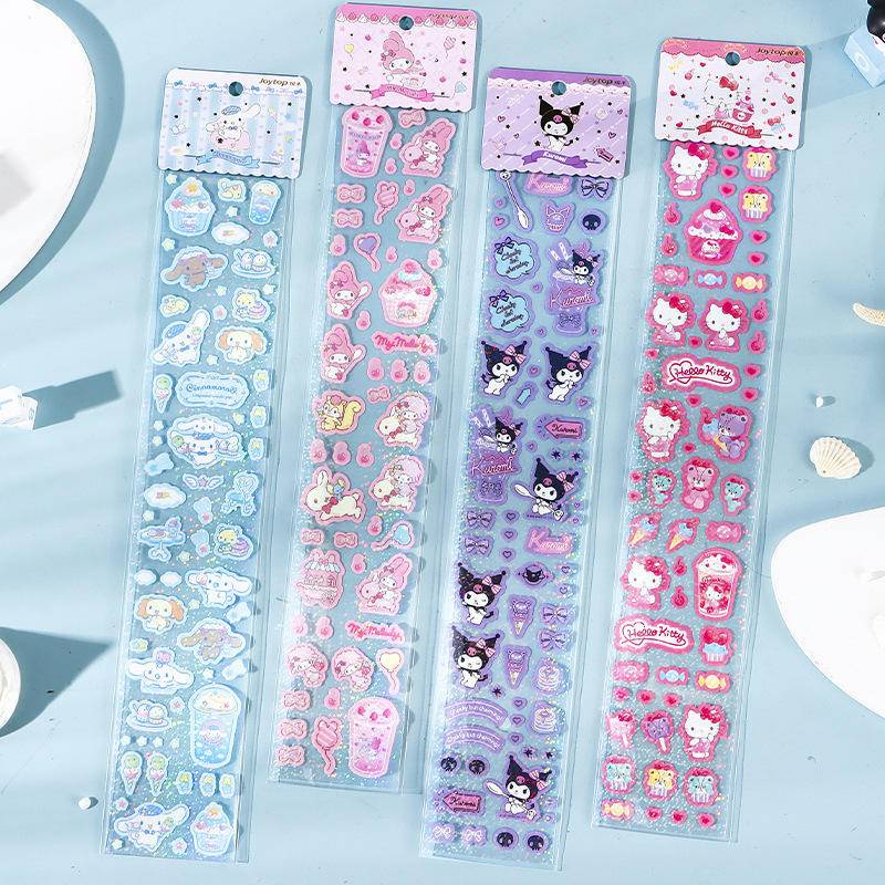 4 Designs Adesivos Sanrio PET Transparente Mymelody Kuromi Cinnamoroll Deco Presente De Aniversário