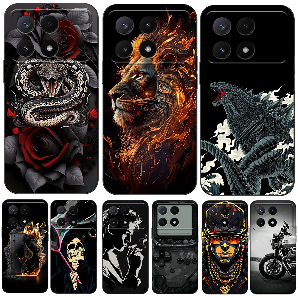 Estojo Para POCO X6 PRO REDMI K70E 5G Silicone Phone Back Cover Preto Telefone Série Diablo Snake Lion Godzilla